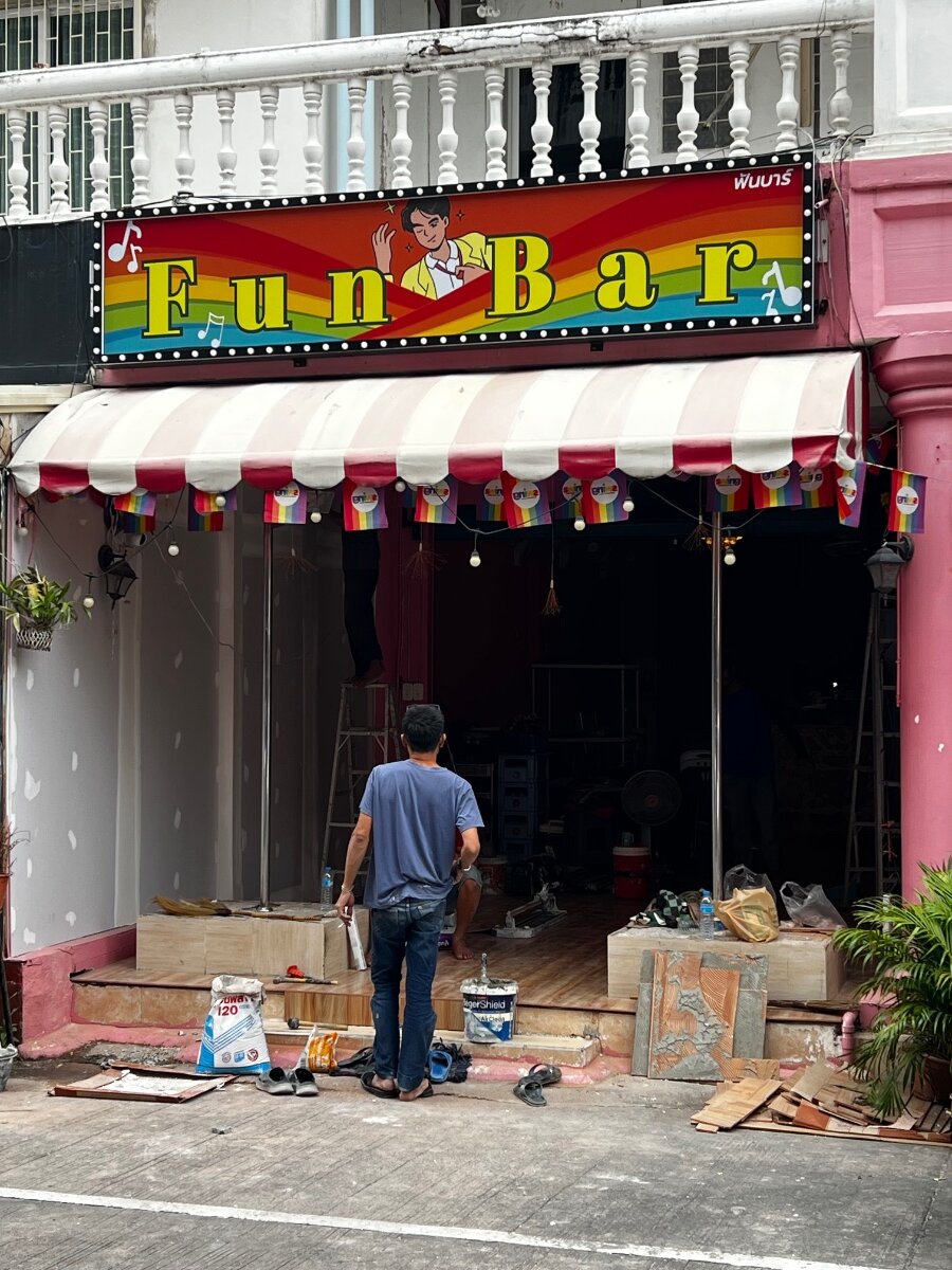 I walked by today and here’s a quick update. They were working on the bar with the question mark and I saw the owner of M-Bar there so it looks like he could be adding it to his existing portfolio on M-Bar and Sunee Bar. I should have taken a photo when I went by the first time and the door was open. The Dragon Music Lounge will be reopening soon under new ownership. A guy at Sunbar told me it’s going to be called PP Bar. Fun Bar is undergoing major renovations. I’m not sure if the name will change.