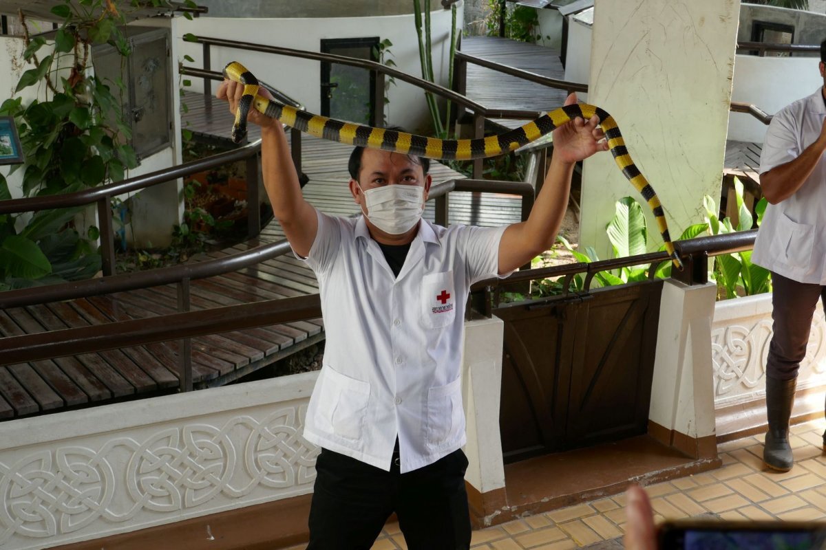 Keithambrose Posted 4 hours ago Posted 4 hours ago 1 hour ago, daydreamer said: Sorry to disappoint. This post is not about trouser snakes, but instead the reptilian kind. I have seen the Bangkok Snake Farm mentioned here, but only in a brief snippet without details. I visited there today, and thought and the following might be of interest for someone looking for a way to spend a couple hours in the Silom area during the daytime. I am posting this in the Gay Bangkok section. Although not specifically gay info, they do have a couple live spitting snakes (cobras) on display, so that is close enough to qualify this entry into the Gay Bangkok section of the forum. Just a very short walk from the Surawong and Rama IV intersection is the sprawling Red Cross compound. In one section, the Red Cross runs the Bangkok Snake Farm, where it has operated for over 100 years. There is a snake museum, more like a zoo, with live snakes on exhibit, a daily 30 minute snake handling demonstration, and a venomous snake milking show. The show features a king cobra, two monocled cobras, along with many others, including Thailand's deadliest snake, the banded krait. There is also a restaurant and a cafe on the grounds. The restaurant has down to earth prices, with a fresh cooked pad thai priced at 50 baht, very reasonable for a sit down restaurant in the Silom area. Admission is 200 baht (50 baht for Thais), and includes the museum and two shows mentioned above, and a photo opportunity to hold a Burmese python around your neck and shoulders, if you wish. This farm provides a valuable service, with the extracted venom being used to create medical antivenom, and distributed to hospitals throughout the country, for emergency use to treat snake bite patients. If you go, I recommend going an hour early, and have lunch or a cold drink before the show. The amphitheater seating begins filling about 30 minutes before show time. I don't recall the milking show time, but here's a photo of the snake handling show timings. "I am posting this in the Gay Bangkok section. Although not specifically gay info, they do have a couple live spitting snakes (cobras) on display, so that is close enough to qualify this entry into the Gay Bangkok section of the forum." Excellent! vinapu 1 Quote